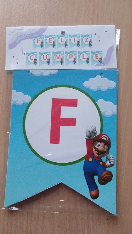 Banderín Personaje "Feliz Cumpleaños" Mario Bross