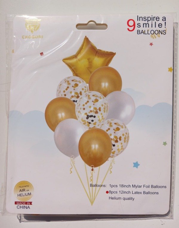 Set Globos Mylar y Latex de 9 piezas Forma Estrella Dorado