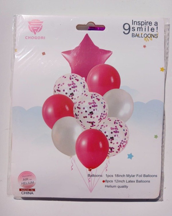 Set Globos Mylar y Latex de 9 piezas Forma Estrella Fucsia
