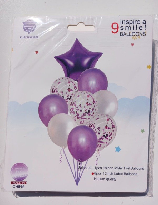 Set Globos Mylar y Latex de 9 piezas Forma Estrella Violeta