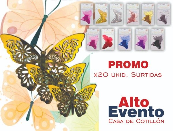 Promoción x20 Blister de Set Mariposa Metalizada x6 unidades modelos y colores surtidos