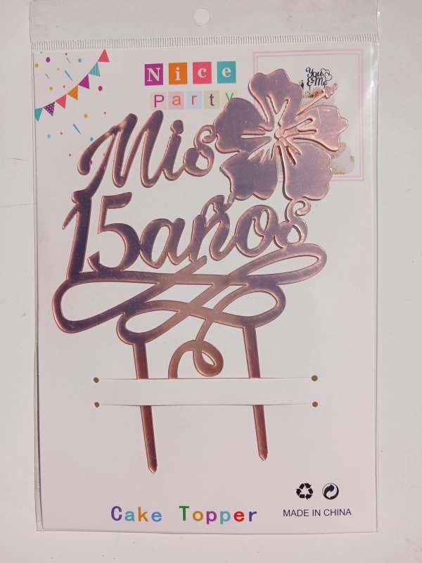 Cake Topper Acrílico "Mis 15 Años" Grande M1 Rosa Gold