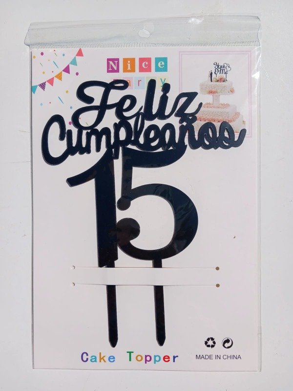 Cake Topper Acrílico "Mis 15 Años" Grande M1 Negro