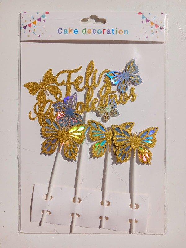 Cake Topper "FC" + 3 Mariposa Gibre Dorado