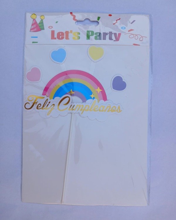 Cake Topper "FC" Dorado Letra Cursiva Arcoiris c/mimi Corazones