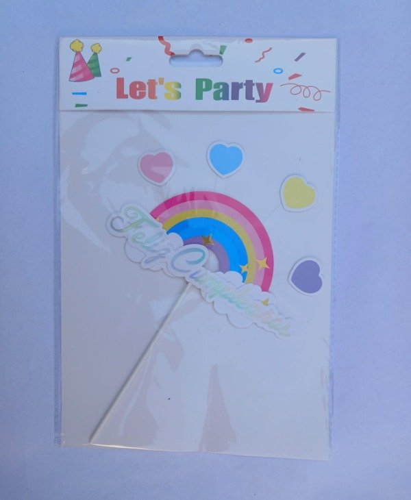 Cake Topper "FC" Plata Letra Cursiva Arcoiris c/mimi Corazones