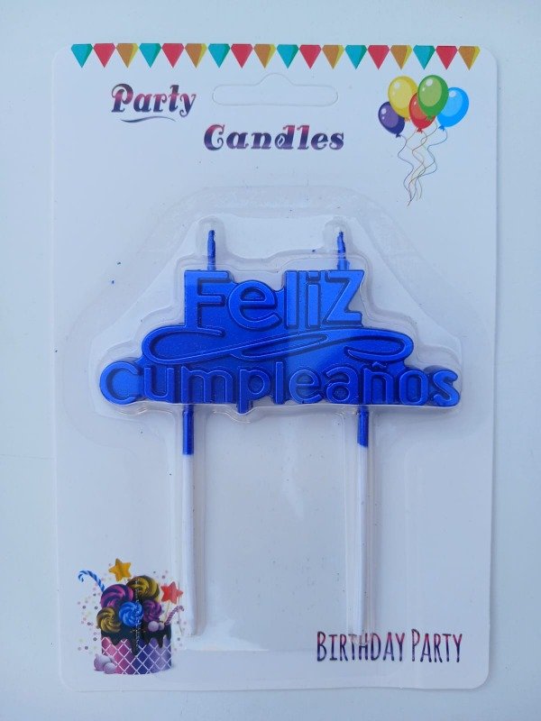 Vela Metalizada Frase "Feliz Cumpleaños" Azul 10x9cm