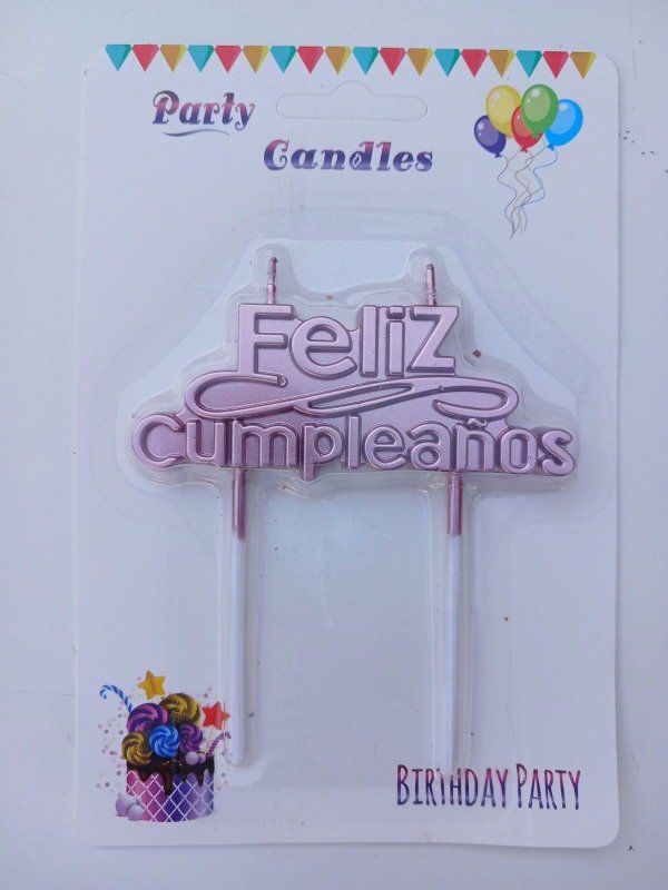 Vela Metalizada Frase "Feliz Cumpleaños" Rosa10x9cm