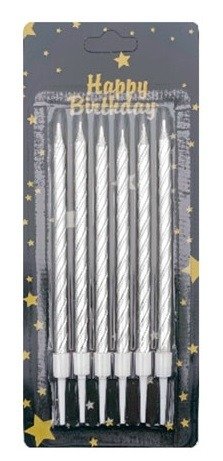 Vela Metalizada Torneada 13cm Plata x6 u.