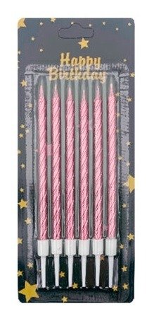 Vela Metalizada Torneada 13cm Rosa x6 u.